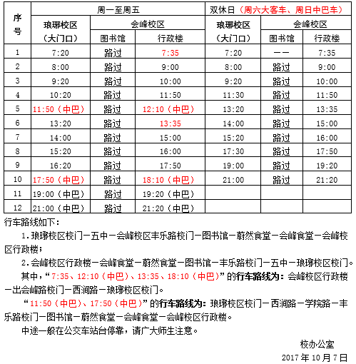 365备用网址器交通车运行时刻表(2017年10月9日起执行)