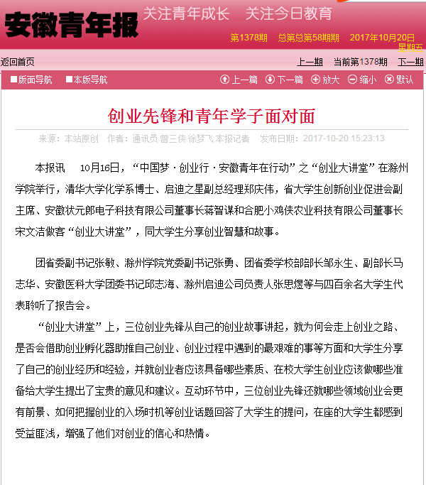 【安徽青年报】创业先锋与青年学子面对面