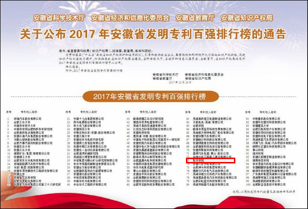 据悉,安徽省发明专利百强排行榜发布旨在为贯彻落实《“十三五”安徽省知识产权保护和运用规划》,引导和鼓励我省企业、高等院校和科研院所大力实施知识产权战略,促进知识产权创造能力提升,加快推进我省知识产权强省建设。评选综合考量参选主体的创新能力、知识产权的运用与管理能力等。