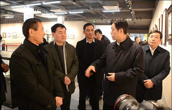 谢广祥一行首先来到我校艺术馆,分别参观了美术展厅、音乐展厅和地方文化展厅,在我校师生创作作品前不时驻足,边看边问。他高度评价了我校人文社科及艺术类学科建设成效,对艺术馆在提升学生艺术素养、推进学校艺术教育、传承地方文化、推动文艺创新等方面发挥的积极作用表示肯定,对我校探索艺术文化教育和人才培养模式的转型表示认同,对我校师生积极参与各级设计大赛、并将成果与企业有效链接表示赞许。他希望学校继续发挥自身学科专业优势培养应用型人才,为地方经济社会发展提供人才支持和智力支持。