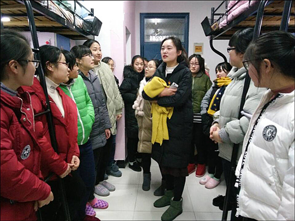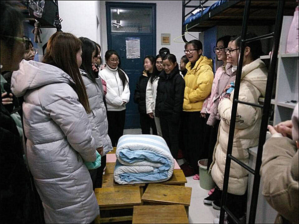 学生党员和辅导员助理们还亲切询问了大一新生几天军训的感受,嘱咐他们在冬训期间一定要做好保暖工作,并让班委们督促班级同学起床、吃早餐以及各项后勤工作,坚决杜绝熬夜以及睡懒觉情况,以最好的状态圆满完成军训任务。